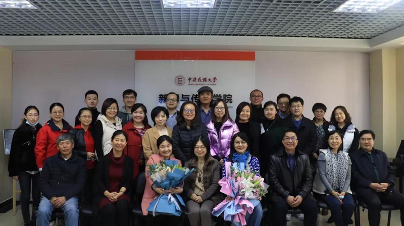 之后,全体教师为退休教师赵五星老师、沈虹老师和调离教师彭亚华老师、脱梦阳老师举行了温馨的欢送会。教师代表对四位教师表达了感谢、不舍之情并送上美好的祝福。感谢四位教师以满腔热情,尽心尽力培养新传学子,期待她们常回“家”看看。