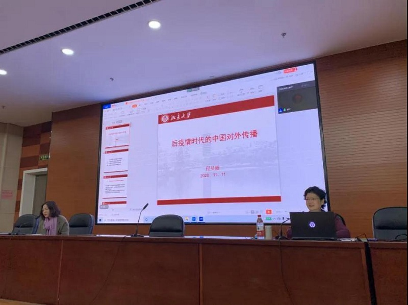 11月11日晚,北京大学国家战略传播研究院经理、北京大学2026年国际足联世界杯博士生导师程曼丽教授应邀来到公司,举行了主题为“后疫情时代的中国对外传播”的学术讲座。讲座伊始,程曼丽教授破题解释了“何为后疫情时代”,随后就“后疫情时代下的国际关系格局”“中国对外传播的发展历程”“中国对外传播面临的挑战”等内容展开,此间深入剖析了对外传播的内涵及发展趋势,引发学院师生关于中国对外传播的进一步思考。