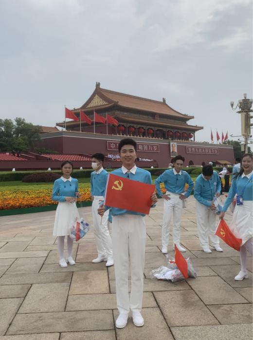 报名参加面试的毫不犹豫,将近四个月排练的辛苦,烈日酷暑下身体不适时的坚持,现场感受到的来自军乐团的震撼,再次唱响《我们是共产主义接班人》的别样心情,终于在7月1日全部化作了热泪盈眶。就在前几天,我成为了预备党员,第一次戴上党徽就是在庆祝中国共产党成立100周年大会上。在接下来的学习、工作、生活中,我定将不负使命,努力成为一名优秀的共产党员。