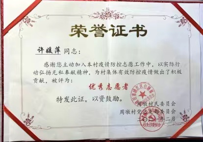 21级新传3班的魏卓昕同学加入了社区核酸检测志愿服务工作活动中,“在短短一天的志愿活动中,我过的很充实,也结识了很多志同道合的志愿者。我感动于那些在困难中逆流而上、勇于担当、默默奉献的每一个人,感谢所有在背后默默为我们幸福生活付出的人们。”