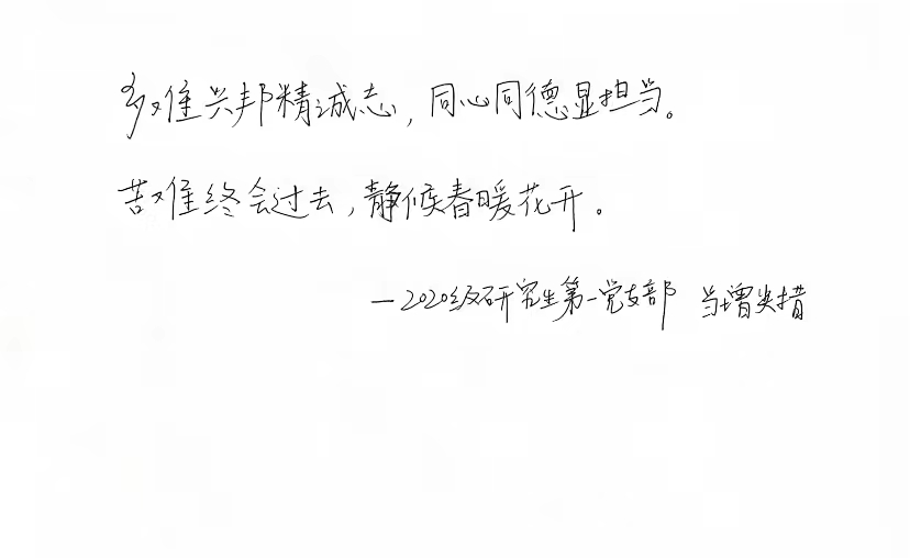 5月12日,2020级研究生第一党支部围绕“致敬抗疫一线的记者”“抗疫影片分享”“抗疫志愿者故事分享”“支部成员手写抗疫祝福和漫画创作”等内容开展此次主题党日。