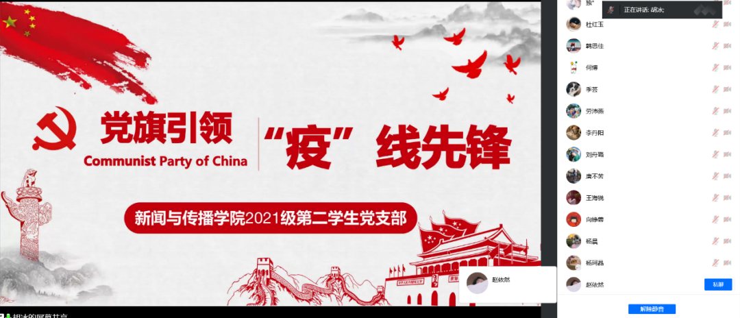 5月11日日晚,2021级第二员工支部的主题党日活动从学习党中央有关疫情防控的重要精神到支部党员参与疫情防控事迹分享,再到员工党员在居家学习期间的心理状态调节,本次党日活动营造了共克时艰的良好氛围,发挥了员工党支部引领作用。