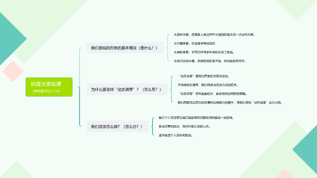 此次大思政课是学院全力做好员工疫情防控工作过程中的一次重要宣讲。自本轮疫情发生以来,学院上下坚持把疫情防控作为当前首要的政治任务,强化使命担当、奋力冲在一线。员工工作队伍全体24小时在线待命,分类分班召开多场防疫线上会议,老师们夜以继日扎实做好数据报送、核酸打卡、校园封闭管理、员工心理关爱及各类突发事件处置工作,确保全体同学身心健康。