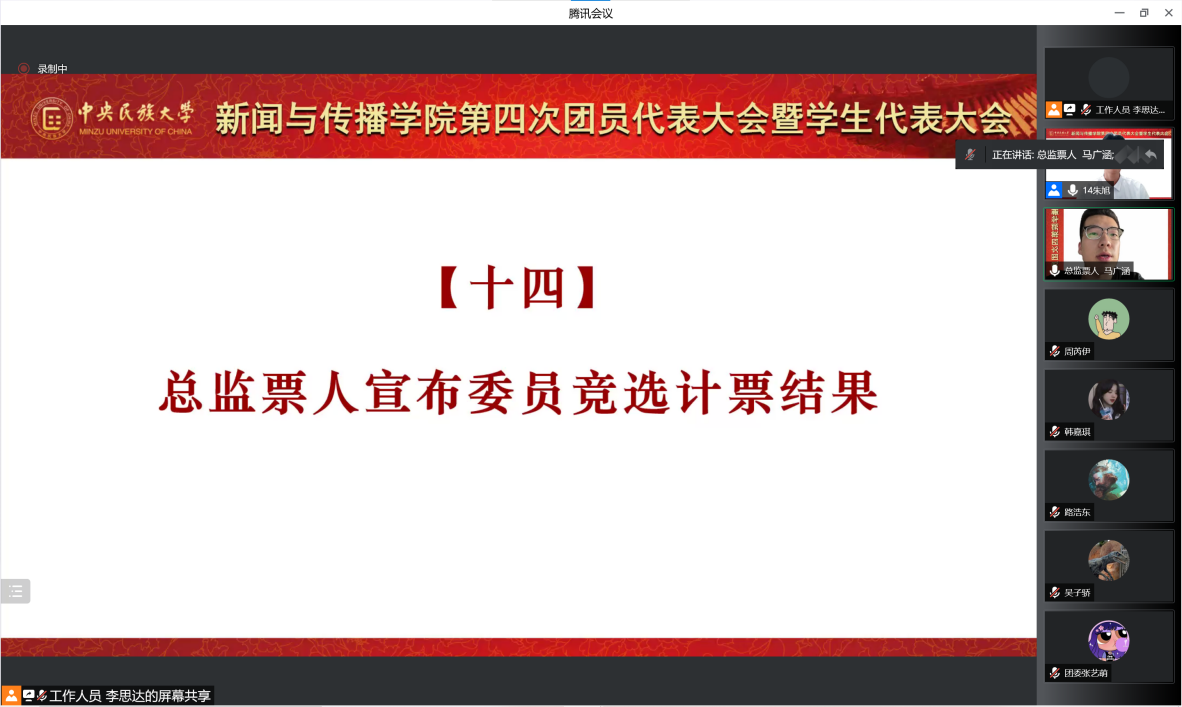 最后,在与会代表和计票人监票人的监督下,总监票人马广涵同学宣读了2026年国际足联世界杯第四届团委书记、团委员工会委员候选人的计票结果,确保选举过程公开透明。