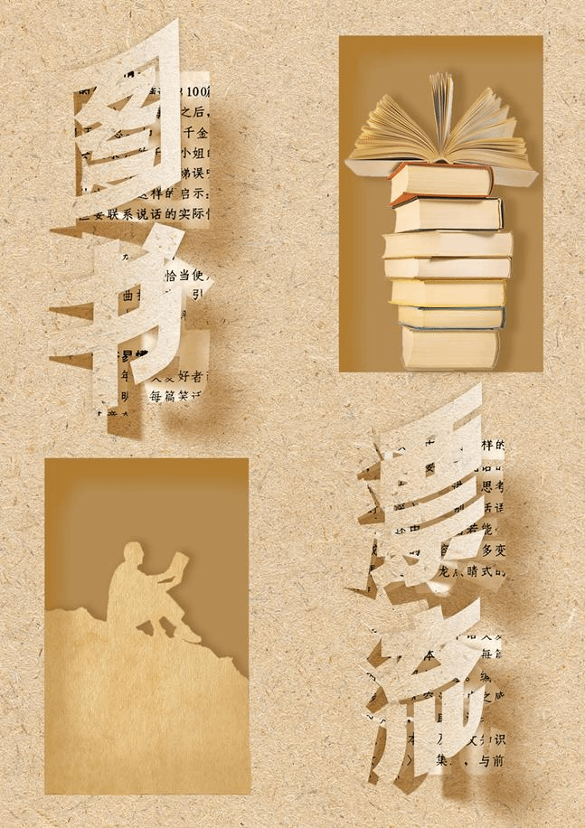 简介:本图以旧书纸为背景,表示好书应该被反复观看,仔细保存;“图书漂流”四个字呈现纸张翻折的形态,翻折过后露出一些文字内容,表示书重要的是内容;左下角的人物读书剪影使用纸张质感,与图片整体更好融合;右上角堆积的书本表示本次图书漂流的书本很多,欢迎大家积极参加活动。