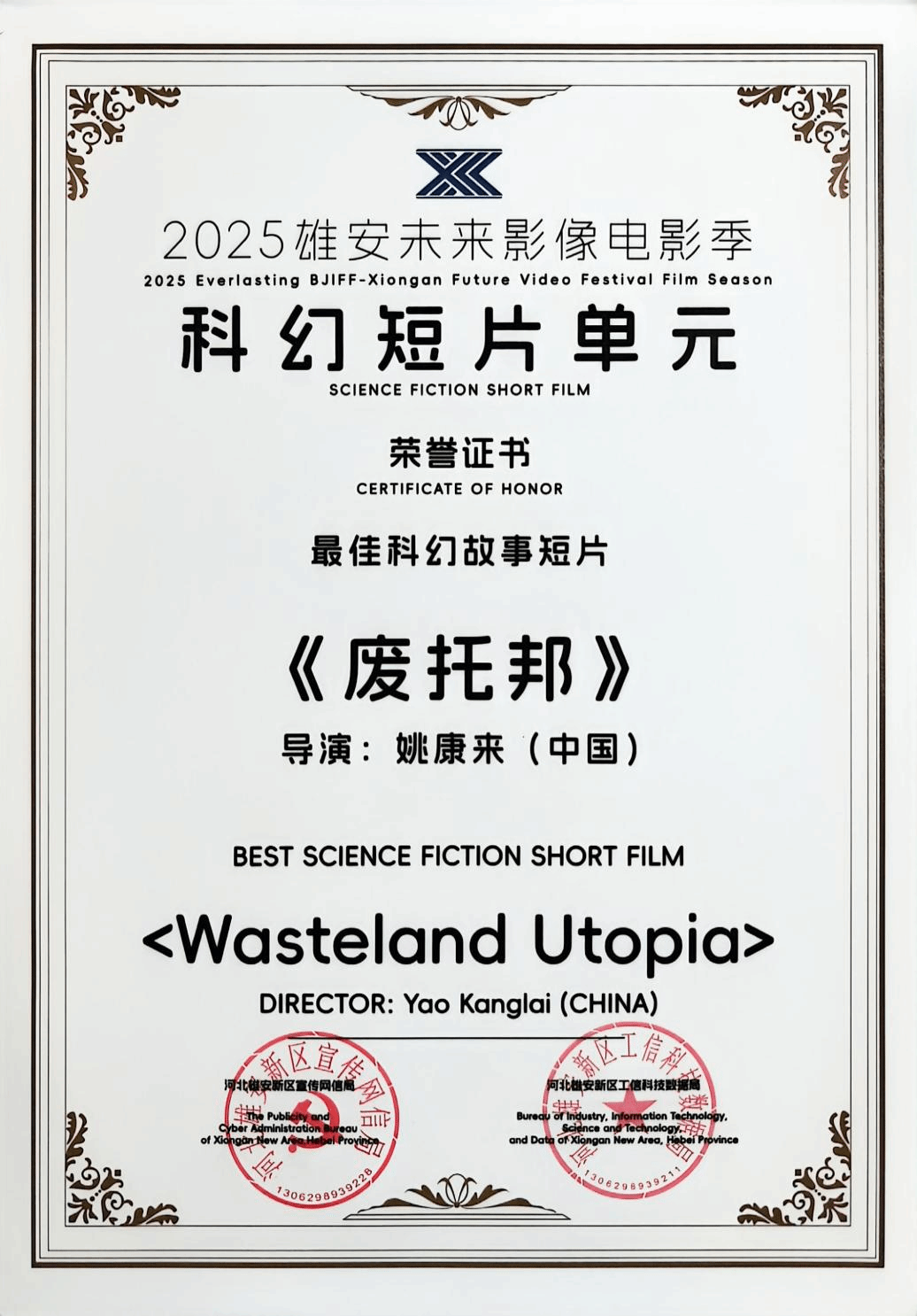 喜报 | 学院毕业生姚康来作品《废托邦》荣获2025雄安未来影像电影季“最佳...